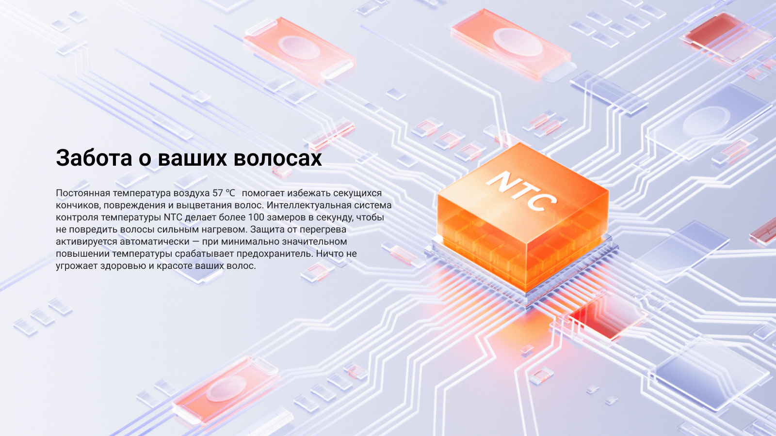 Боритесь со статическим электричеством с помощью эмиттера анионов. Специальная встроенная анионная пушка распыляет больше 10 000 000 ионов/см³, а воздушный поток направляет заряженные частицы на волосы. В результате волосы становятся послушнее и лучше удерживают влагу.