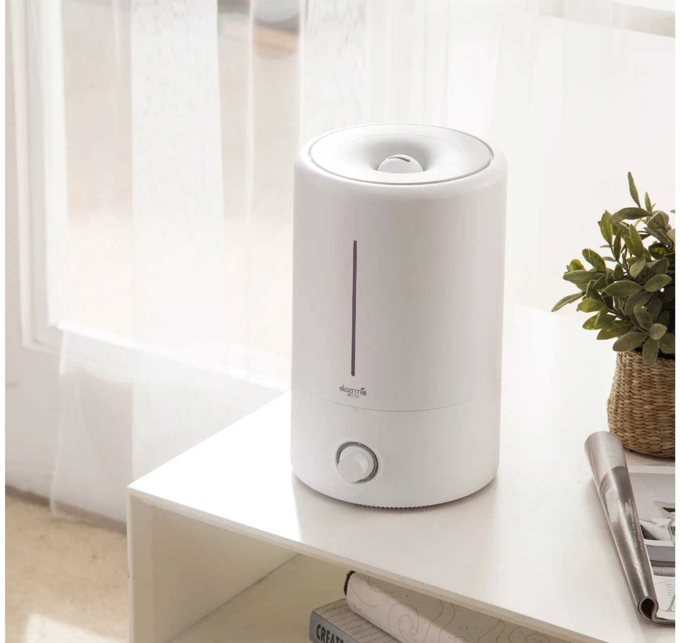 Увлажнитель воздуха Deerma Humidifier DEM-F628 обеспечит мощное и непрерывное увлажнение со скоростью 350 мл/час. Благодаря своим компактным размерам, он подходит как для напольной, так и настольной установки. Управление осуществляется с помощью одной кнопки на корпусе.